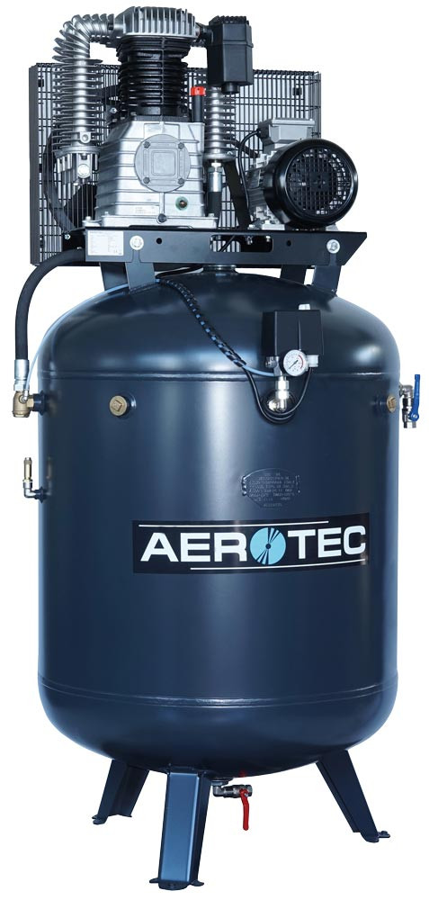 Kolbenkompressor in ölgeschmierter Ausführung für die Werkstatt mit großem Kesselvolumen ∙ Keilriemenbetriebenes 2 Zylinder 2 Stufen Reihen-Aggregat ∙ Anlaufentlastung über Condor Druckschaltersteuerung ∙ Kondensatablass erfolgt mittels Kugelhahn ∙ Motor für den Industrieeinsatz