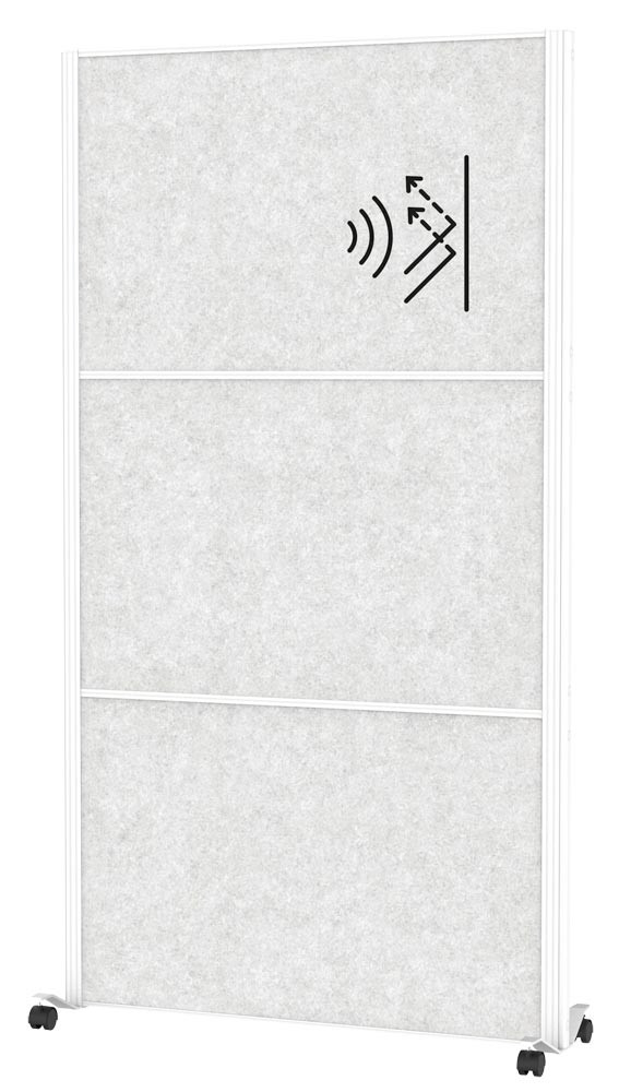 Akustik-Stellwand, BxTxH 1000x44x1800 mm, 3x Textil, hellgrau, mobil E6487907