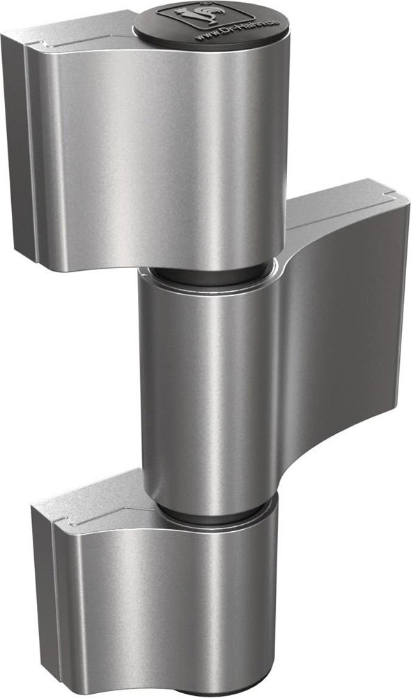 Aufschraubband für repräsentative Objekt- und Funktionstüren · DIN links / rechts verwendbar · dreidimensional verstellbar · Bohrabstand 65 mm, Halbmaße: rahmenseitig 20,5 mm, flügelseitig 44,5 mm · gefertigt aus stranggepresstem Aluminium · Lagerstelle wartungsfrei · Ankerschraube 58 mm