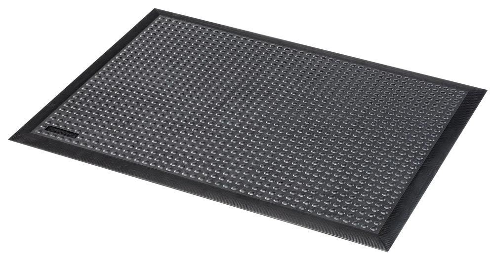 Die geschlossene, rutschfeste Oberfläche gibt beim Betreten nach und dämpft den Schritt. Ideal für den Einsatz in Verkaufs- und Kassierzonen, Rezeptionen, Kontrollständen und Labor- und Montagebereichen.
