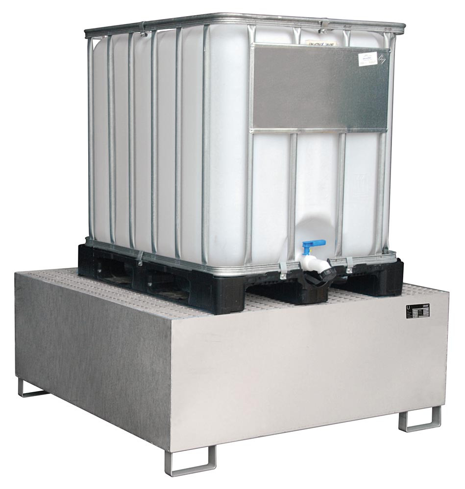 Auffangwanne, 2 mm Edelstahl, für 1 St. 1000-l-IBC, stehend Lagern, BxTxH 1460x1460x620 mm, Auffangvolumen 1000 l