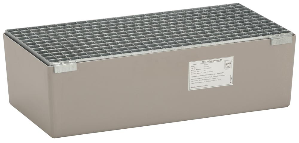 Auffangwanne aus GFK, mit verzinktem Gitterrost, Auffangvolumen 65 l, BxTxH 420x820x240 mm