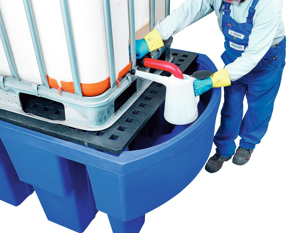 ∙ Die Wannen vereinen hohe Stabilität mit großer Variationsmöglichkeit und bieten hohe Beständigkeit gegen Öle, Säuren, Laugen etc. ∙ Zur Lagerung von Kubischen-Tank-Containern (KTC/IBC) geeignet ∙ Mit allgemeiner bauaufsichtlicher Zulassung des DIBt-Berlin ∙ Zur sicheren und vorschriftsmäßigen Lagerung wassergefährdender Flüssigkeiten aller Gefährdungsklassen ∙ Nicht zur Lagerung entzündbarer Flüssigkeiten zugelassen ∙ Mit Einfahrtaschen für einen leichten und sicheren innerbetrieblichen Transport der leeren Auffangwanne ∙ Farbe blau ∙ Traglast je Stellplatz 2000 kg
