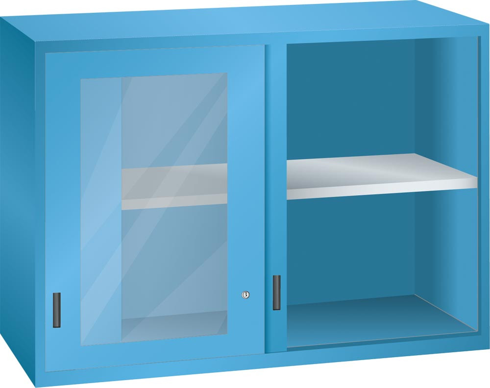 Aufsatzschrank mit Sichtfensterschiebetüren, BxTxH 1023x725x1000 mm, 1 Verstellboden, RAL 5012, passend zu Schubladenschrank 54x36 E E1979461