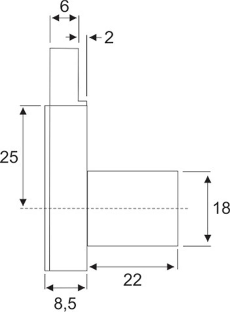 25 mm Dorn, Gehäuse 22 mm vorstehend · Zamak vernickelt · Zylinder-Ø 18 mm · Zylinder montiert · mit Zylinderrosette und 2 Schlüsseln