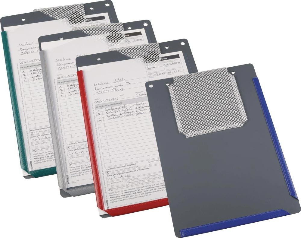 DIN A4 · extra stabile 2 mm PVC-Hartfolie · Schlüsselfach auf der Rückseite · ausgestattet mit einer Falzschweißnaht für zusätzlichen Reißschutz · geflochtene Schnur zum Aufhängen · VE = 10 Stück