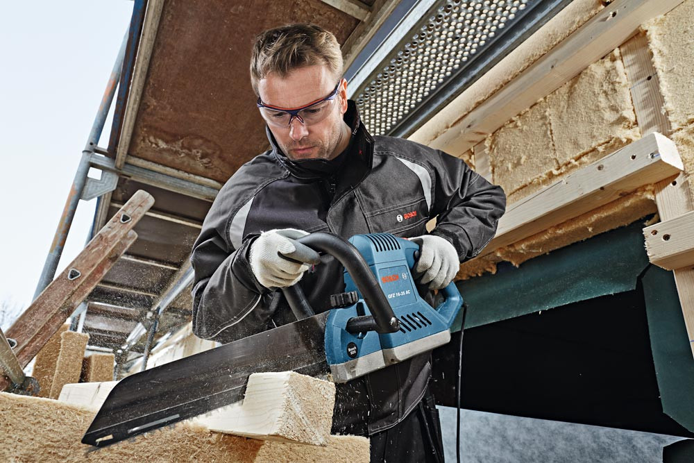 Ausführung: Robuste Spezialsäge mit Steuer- und Constant-Electronic für stufenlose Drehzahlvorwahl und konstante Drehzahl unter Last ∙ Mit Einschaltsperre ∙ Sägeblattwechsel mit SDS-Schnellwechsel-System ∙ Speziell für Sägen von Holz, Gipskarton, Gasbeton und Kunststoff etc.