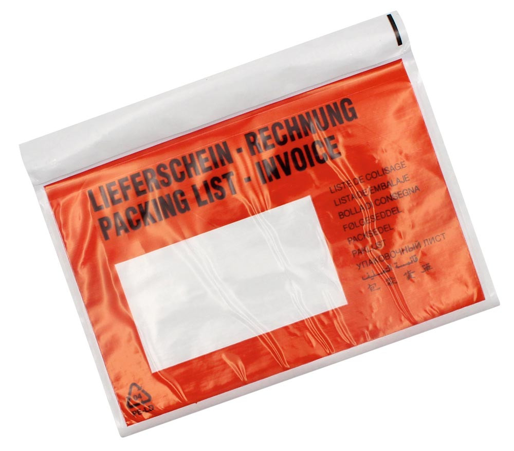 Begleittaschen, Format DIN lang, Außenmaße LxB 230x130 mm, Aufdruck Lieferschein/Rechnung, VE 1000 Stück E820685