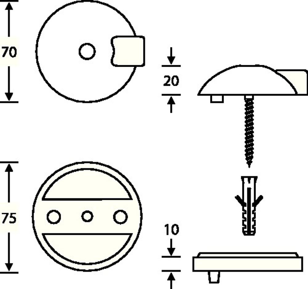 Bodentürpuffer 38 3884 Ø 70 mm Höhe 20 mm Edelstahl matt Dübelmontage