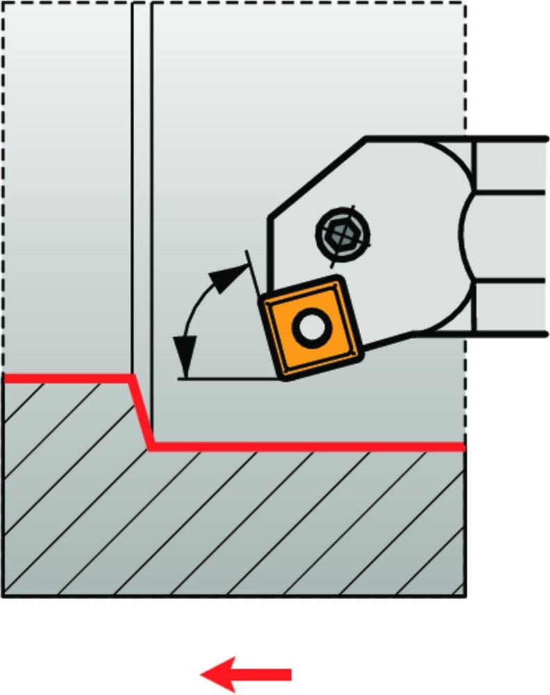 Dreh-Bohrstange mit Kniehebelklemmung zum spannen von Viereckig negative Wendeschneidplatten mit einem Innenkreisdurchmesser von 19.05mm · 6.35mm Dick (ISO Bezeichnung SN.. 1906.. ) · rechte Ausführung zum 75° Längsdrehen mit abgesetzem Schaft · Stahl mit Kühlkanalbohrung · 50mm Durchmesser x 350mm Länge für Innenkegeldrehen und Längsdrehen ohne Schulter