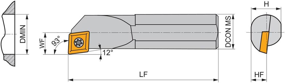Dreh-Bohrstange mit Schraubklemmung zum spannen von 75° Rhombus positive Wendeschneidplatten mit einem Innenkreisdurchmesser von 7.94mm · 3.18mm Dick (ISO Bezeichnung EC.. 0803.. ) · linke Ausführung zum 93° Längsdrehen mit abgesetzem Schaft · Stahl ohne Kühlkanalbohrung · 16mm Durchmesser x 200mm Länge für Innenkegeldrehen und Längsdrehen mit und ohne Schulter
