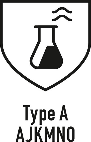 · Chemikalienfestigkeit: A = Methanol / J = n-Heptan / K = Natriumhydroxid 40 % / M = Salpetersäure 65 % / N = Essigsäure 99 % / O = Ammoniakwasser 25 %