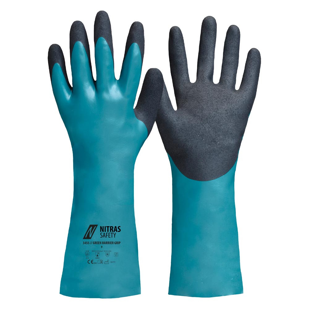Chemikalienschutz-Handschuhe Green Barrier Grip Nitril, Farbe blau/schwarz, Gr. 11