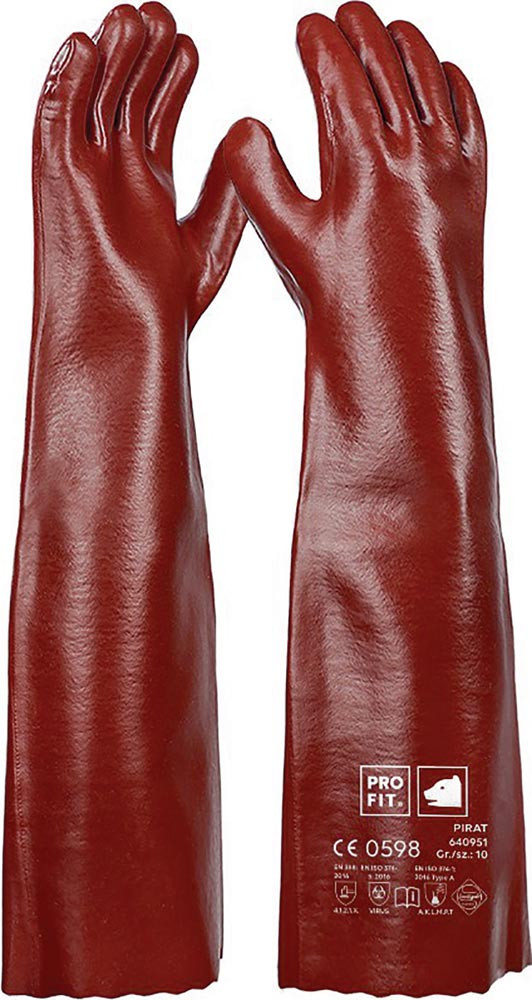 Chemikalienschutzhandschuhe Pirat Größe 10 rotbraun PVC EN 388, EN ISO 374-1 PSA-Kategorie III