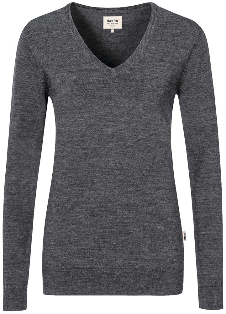 Damen-V-Kragen Pullover Merino Wool, Farbe anthrazit meliert, Gr. M