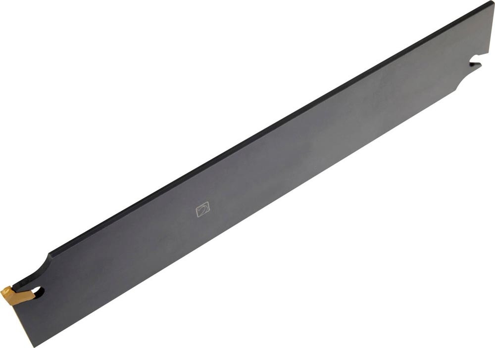 Ein-und Abstechschwert federgeklemmt zum spannen einer einseitigen Wendeschneidplatte mit 5mm Schnittbreite (Bezeichnung LFMX 5.1-. ) · Werkzeugbestückung mit 45-DU.. für eine maximale Einstechtiefe von 80mm · Werkzeugschwert-Höhe 45mm und Länge 250mm zum tiefes radiales Einstechen · Abstechen und Rohr-Abstechen