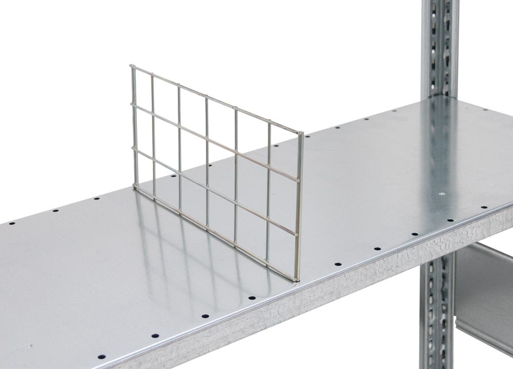· Unterteilung der Fachböden zur idealen Lagerung von Kleinteilen · Einfaches Einstecken in die Systemlochung des Fachbodens · Maschenweite 45/50 x 50 mm · Höhe 140 mm · Glanzverzinkt