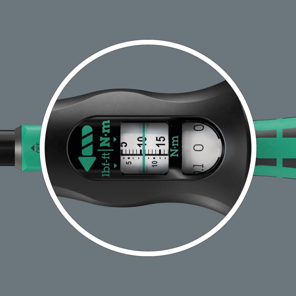 Mit ¼" Vierkant-Antrieb ∙ Umschaltknarre mit Rechtsanzug ∙ Torque Lock Funktion: Die Drehmomentfunktion kann deaktiviert werden, sodass das Werkzeug auch zum Lösen verwendet werden kann ∙ Extra Click: hör- und fühlbares Einstellen des Drehmoments ∙ Drehmomentschlüssel löst hör- und fühlbar aus ∙ Messbereich: 2,5-25 Nm ∙ Präzision ±4 % gemäß DIN EN ISO 6789-1:2017-07