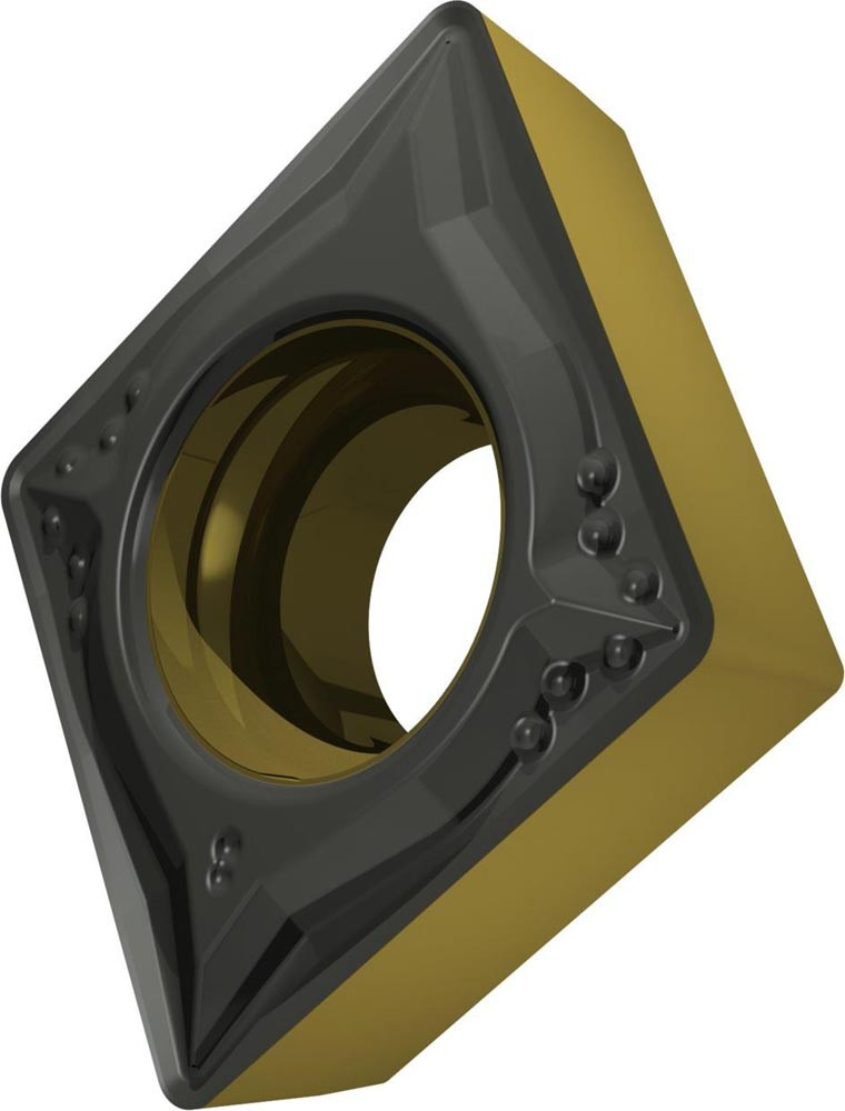Einseitige positive Drehwendeschneidplatte · 80° Rhombisch mit 7° Freiwinkel · Innenkreisdurchmesser von 6.35mm · 2.38mm Dick · 0.4mm Radius · Indexgenauigkeit nach ISO-Toleranzklasse-M · Spanbrecher FM mit verrundeter Schneidkante · im Substrat T9415 · MT-CVD beschichtet WC-Co Substrat im ISO-Bereich P05 -P30 · zum schlichten bis medium bearbeiten von Stählen