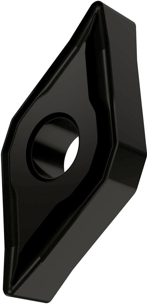 Doppelseitige negative Drehwendeschneidplatte · 55° Rhombisch mit Innenkreisdurchmesser von 12.7mm · 6.35mm Dick · 0.8mm Radius · Indexgenauigkeit nach ISO-Toleranzklasse-M · Spanbrecher NF mit verrundeter Schneidkante · im Substrat T9325 · MT-CVD beschichtet functionally graded WC-Co carbide in den ISO-Bereichen P15 -P35 und M10 -M30 · zum schlichten bis medium bearbeiten von Stählen und nichtrostenden Stählen