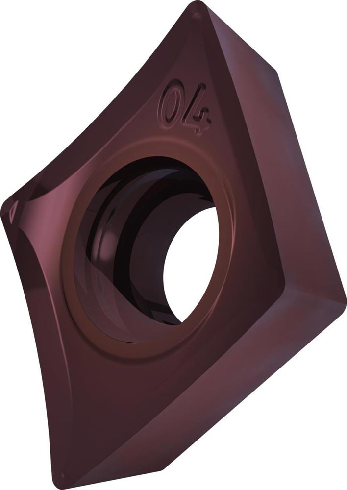 Einseitige positive Drehwendeschneidplatte · 75° Rhombisch mit 7° Freiwinkel · Innenkreisdurchmesser von 7.94mm · 3.18mm Dick · 0.4mm Radius · Indexgenauigkeit nach ISO-Toleranzklasse-G · Spanbrecher SF3 mit verrundeter Schneidkante · im Substrat T8415.