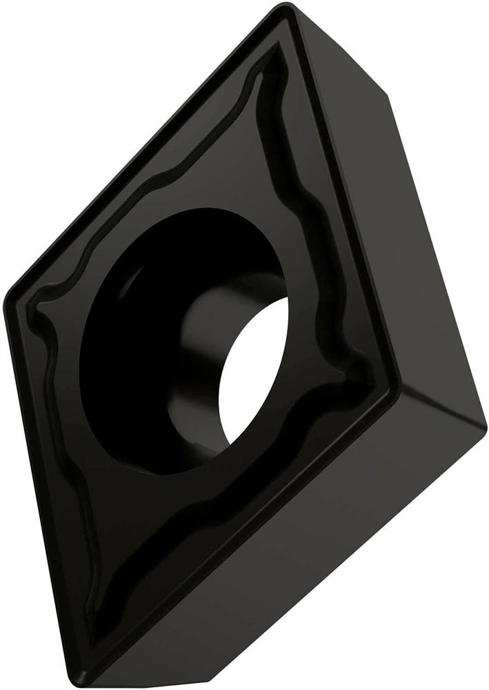 Einseitige positive Drehwendeschneidplatte · 75° Rhombisch mit 7° Freiwinkel · Innenkreisdurchmesser von 7.94mm · 3.18mm Dick · 0.8mm Radius · Indexgenauigkeit nach ISO-Toleranzklasse-M · Spanbrecher FM2 mit verrundeter Schneidkante · im Substrat T8430 · PVD beschichtet WC-Co Feinkornsubstrat im ISO-Bereich P20 -P40 · zum schlichten bis medium bearbeiten von Stählen