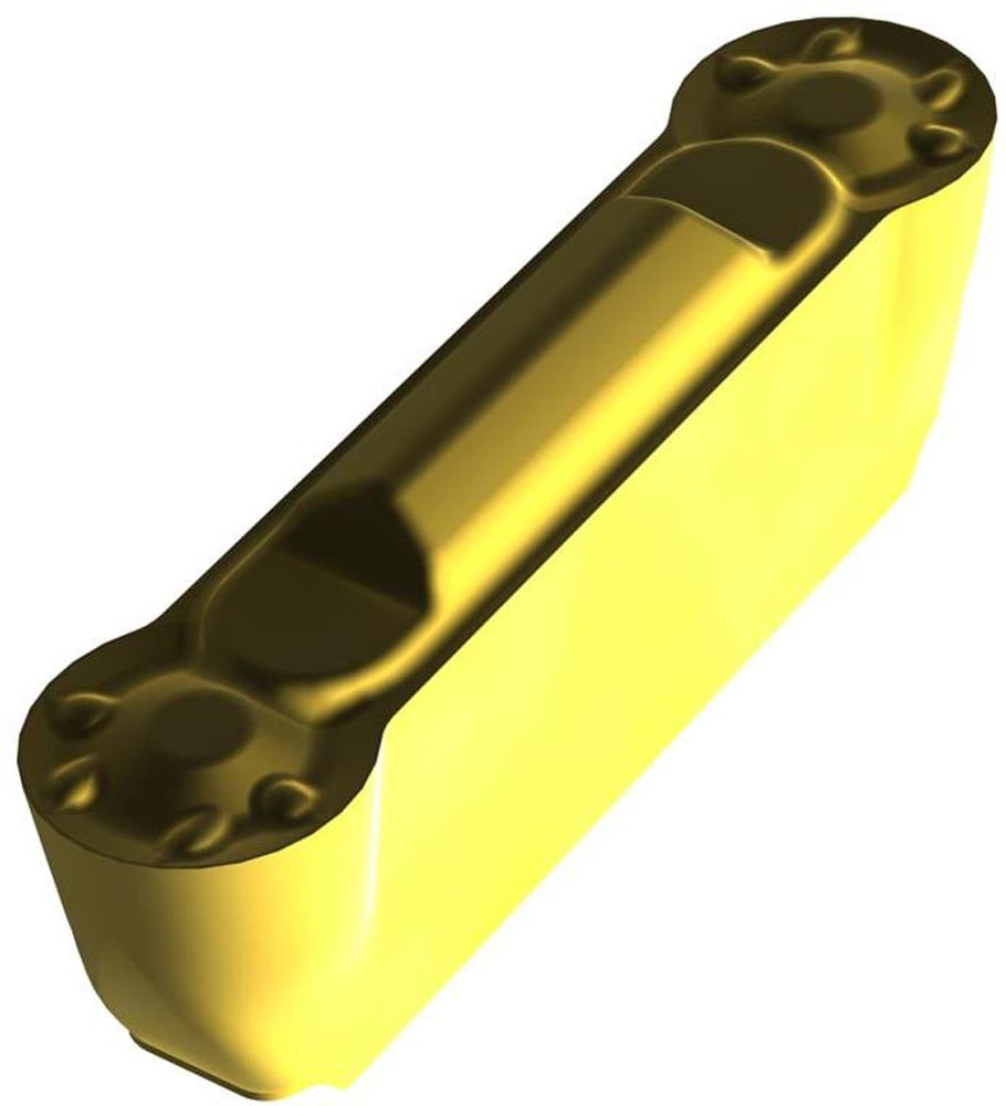 Doppelseitige Ein-und Abstech Wendeschneidplatte · 12.6mm lang mit einer 3mm Schnittbreite und einem 1.5mm Vollradius · eine Genauigkeit nach Toleranzklasse M und einem Spanbrecher MP · Substrat T8330 PVD beschichtetes Feinstkorn WC-Co Hartmetall im ISO-Substrats-Bereich P25-P40 und K20-K40 zur Bearbeitung von Stahl und Guss in Kombination mit DORMER PRAMET GF..(RL) 0313 und GG..(RL) 0313 Ein-und Abstechwerkzeugen