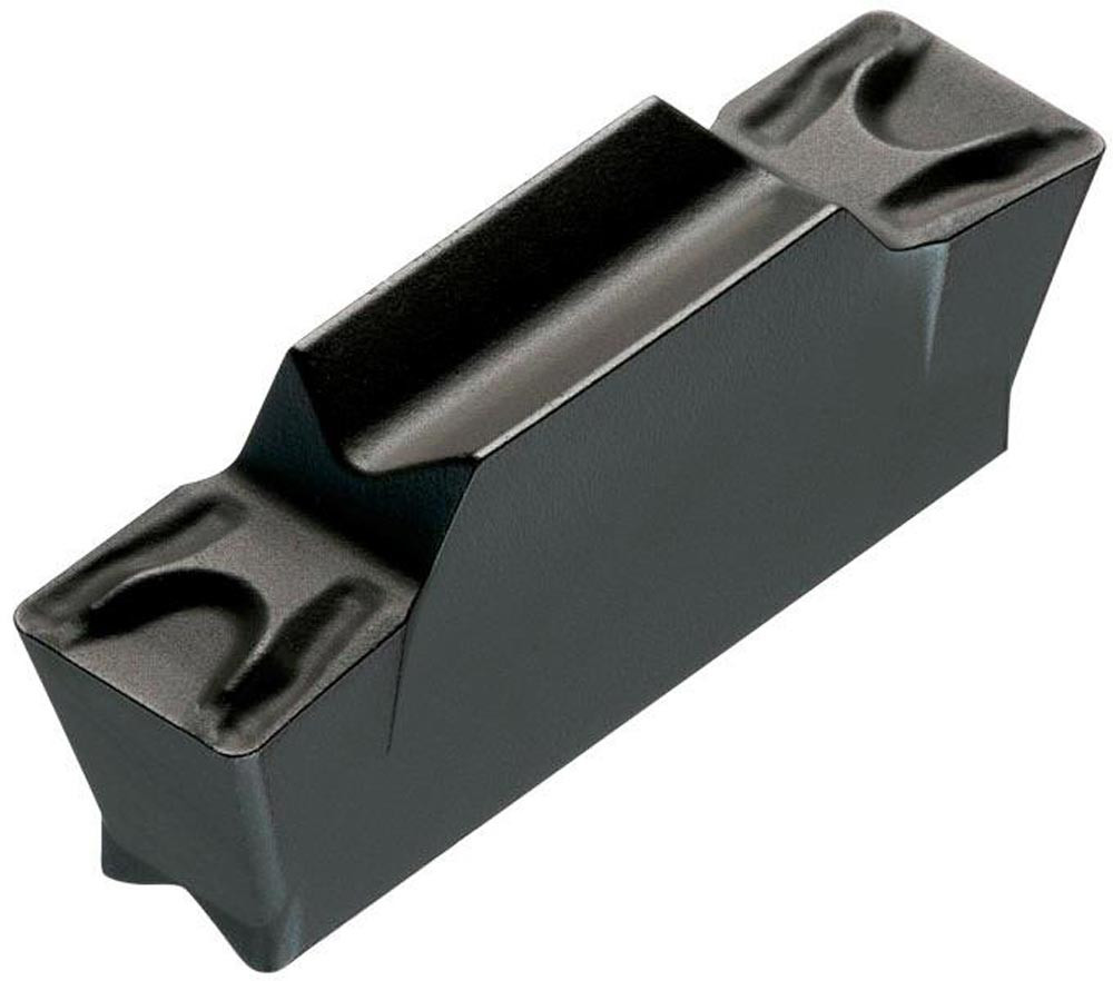 Doppelseitige Ein-und Abstech Wendeschneidplatte · 16.4mm lang mit einer 4mm Schnittbreite und einem 0.8mm Eckenradius · eine Genauigkeit nach Toleranzklasse M und einem Spanbrecher F · Substrat T9325 MT-CVD beschichtetes Funktionskorn WC-Co Hartmetall im ISO-Substrats-Bereich P15-P35 und K15-K35 zur Bearbeitung von Stahl und Guss in Kombination mit DORMER PRAMET GF..(RL) 04 · GG..(RL) 04 und XLCCN 0416 Ein-und Abstechwerkzeugen