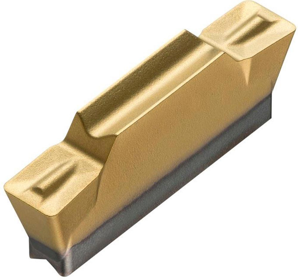 Doppelseitige Ein-und Abstech Wendeschneidplatte · 16.4mm lang mit einer 5mm Schnittbreite und einem 0.8mm Eckenradius · eine Genauigkeit nach Toleranzklasse M und einem Spanbrecher M · Substrat T9325 MT-CVD beschichtetes Funktionskorn WC-Co Hartmetall im ISO-Substrats-Bereich P15-P35 und K15-K35 zur Bearbeitung von Stahl und Guss in Kombination mit DORMER PRAMET GF..(RL) 05 und XLCCN 0516 Ein-und Abstechwerkzeugen