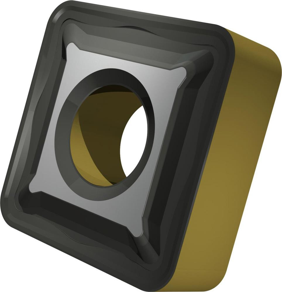 Doppelseitige negative Drehwendeschneidplatte · Viereckig mit Innenkreisdurchmesser von 12.7mm · 4.76mm Dick · 1.6mm Radius · Indexgenauigkeit nach ISO-Toleranzklasse-M · Spanbrecher R mit verrundeter Schneidkante · im Substrat T9415 · MT-CVD beschichtet WC-Co Substrat im ISO-Bereich P05 -P30 · zum medium bis schruppen bearbeiten von Stählen