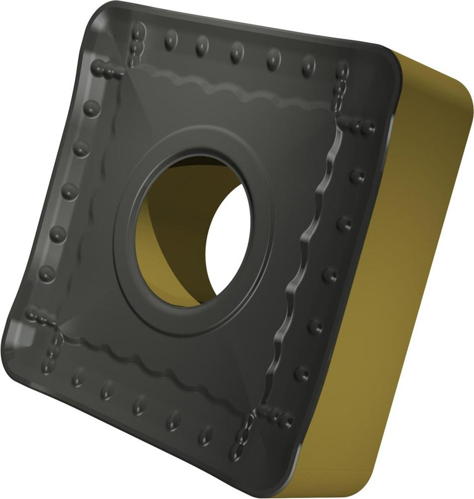 Doppelseitige negative Drehwendeschneidplatte · Viereckig mit Innenkreisdurchmesser von 25.4mm · 7.94mm Dick · 2.4mm Radius · Indexgenauigkeit nach ISO-Toleranzklasse-M · Spanbrecher OR mit verrundeter Schneidkante · im Substrat T9415 · MT-CVD beschichtet WC-Co Substrat im ISO-Bereich P05 -P30 · zum medium bis schweres schruppen bearbeiten von Stählen