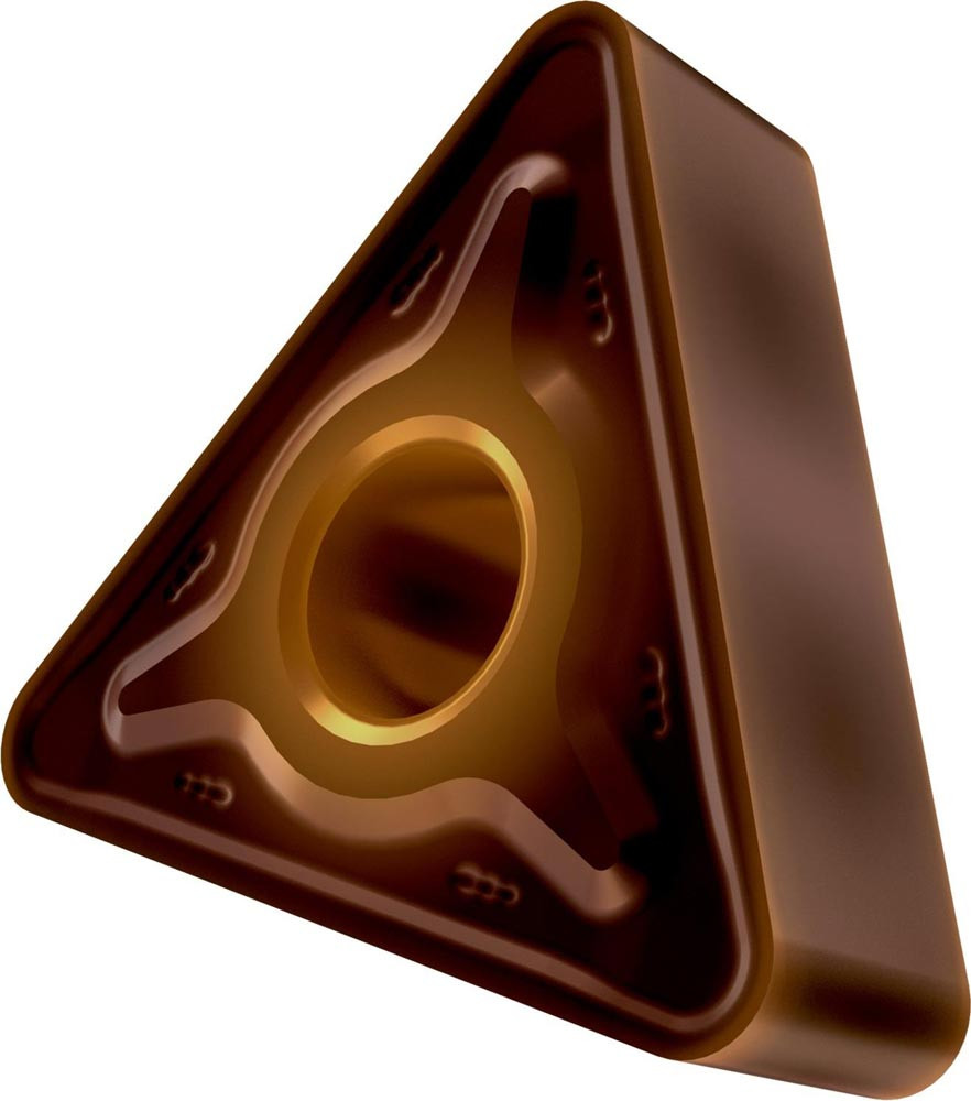 Doppelseitige negative Drehwendeschneidplatte · Triangular mit Innenkreisdurchmesser von 9.525mm · 4.76mm Dick · 1.2mm Radius · Indexgenauigkeit nach ISO-Toleranzklasse-M · Spanbrecher RM mit verrundeter Schneidkante · im Substrat T8430 · PVD beschichtet WC-Co Feinkornsubstrat in den ISO-Bereichen P20 -P40 und M20 -M35 · zum medium bis schruppen bearbeiten von Stählen und nichtrostenden Stählen