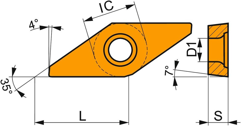 · Formcode Wendeschneidplatte: V - rhombischer 35° eingeschlossener Winkel