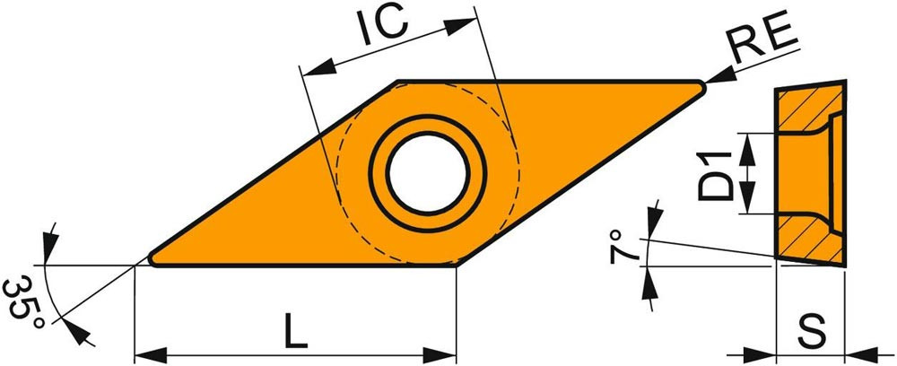 · Formcode Wendeschneidplatte: V - rhombischer 35° eingeschlossener Winkel