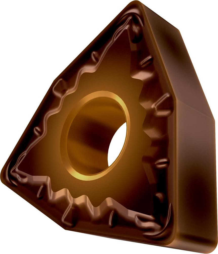 Doppelseitige negative Drehwendeschneidplatte · 80° Trigon mit Innenkreisdurchmesser von 12.7mm · 4.76mm Dick · 0.4mm Radius · Indexgenauigkeit nach ISO-Toleranzklasse-M · Spanbrecher FM mit verrundeter Schneidkante · im Substrat T8430 · PVD beschichtet WC-Co Feinkornsubstrat im ISO-Bereich P20 -P40 · zum schlichten bis medium bearbeiten von Stählen