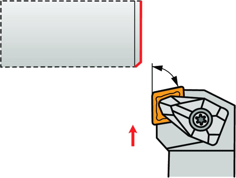 Dreh-Trägerwerkzeug doppelt geklemmt zum spannen von 80° Rhombus negative Wendeschneidplatten mit einem Innenkreisdurchmesser von 12.7mm · 4.76mm Dick (ISO Bezeichnung CN.. 1204.. ) · linke Ausführung zum 75° Längsdrehen mit abgesetzem Schaft · 25mm Werkzeughöhe x 25mm Breite x 150mm Länge für Stirndrehen ohne Schulter
