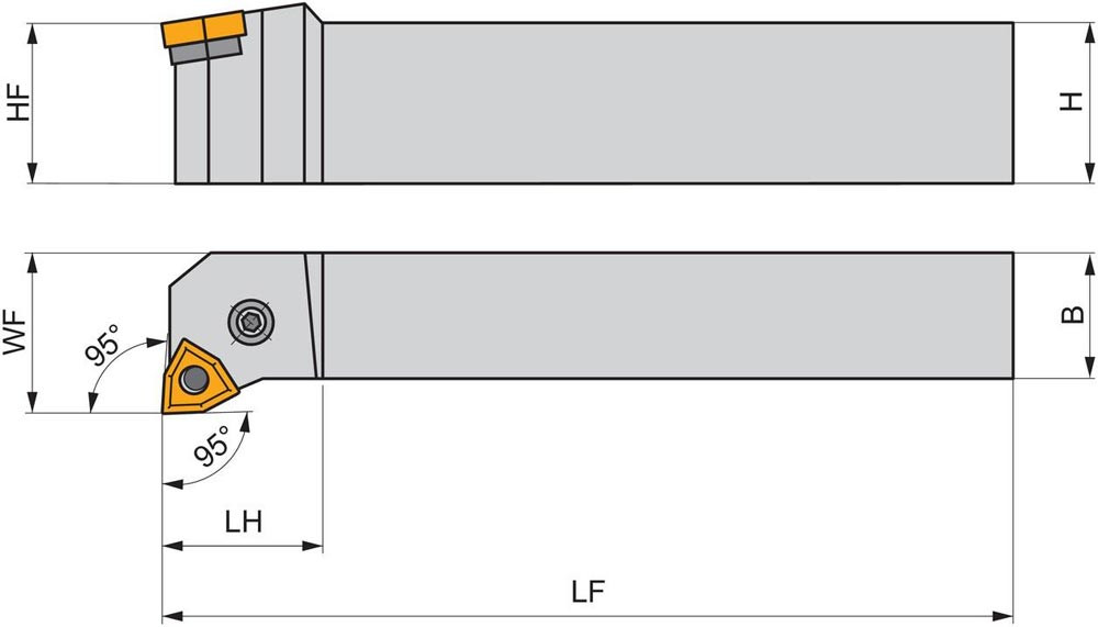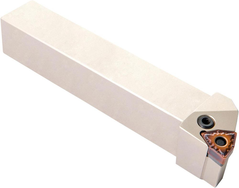 Dreh-Trägerwerkzeug mit Kniehebelklemmung zum spannen von 80° Trigonal negative Wendeschneidplatten mit einem Innenkreisdurchmesser von 9.525mm · 4.76mm Dick (ISO Bezeichnung WN.. 0604.. ) · linke Ausführung zum 95° Stirn-und Längsdrehen mit abgesetzem Schaft · 16mm Werkzeughöhe x 16mm Breite x 100mm Länge für Kegeldrehen · Stirndrehen mit und ohne Schulter und Längsdrehen mit und ohne Schulter