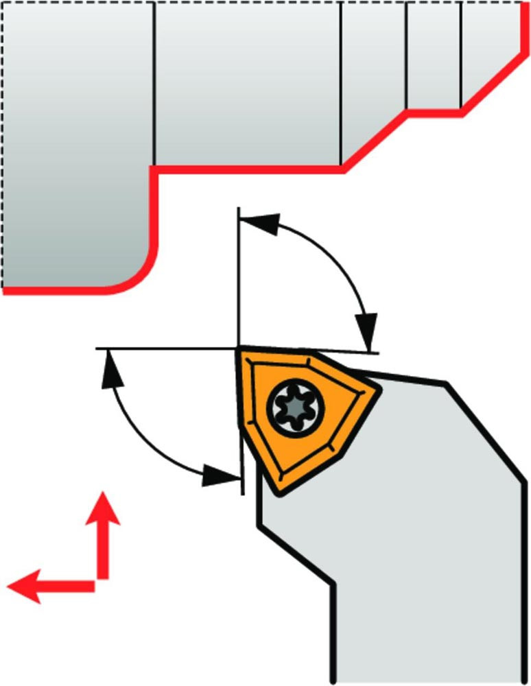 Dreh-Trägerwerkzeug mit Schraubklemmung zum spannen von 80° Trigonal positive Wendeschneidplatten mit einem Innenkreisdurchmesser von 9.525mm · 3.97mm Dick (ISO Bezeichnung WC.. 06T3.. ) · linke Ausführung zum 95° Stirn-und Längsdrehen mit abgesetzem Schaft · 20mm Werkzeughöhe x 20mm Breite x 125mm Länge für Kegeldrehen · Stirndrehen mit und ohne Schulter und Längsdrehen mit und ohne Schulter
