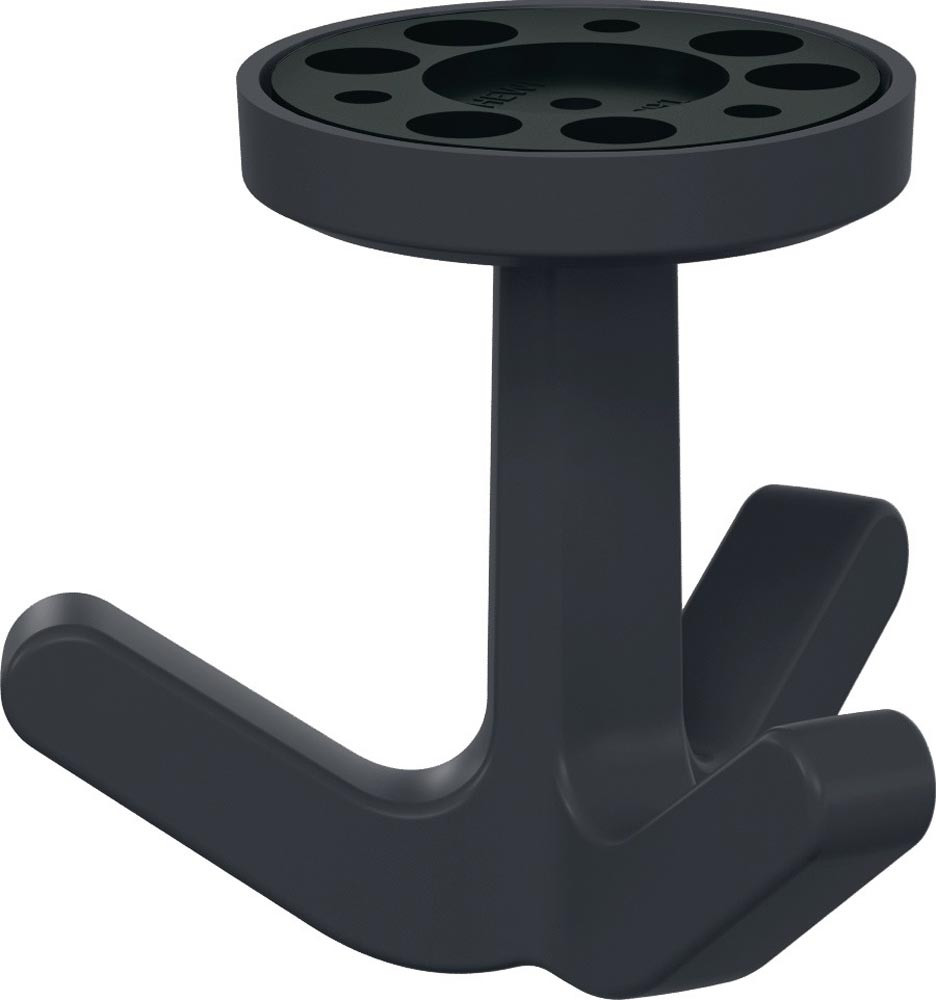 elastisch · nachgebendes Material, weiche Haptik und abgerundete Kanten reduzieren Stoß- und Verletzungsgefahr · dient zum Aufhängen von Kleidungsstücken und anderen Utensilien · drehbarer Haken zum Aufschrauben von unten · Ø Rosette 51 mm · B 80 x H 69 mm · aus Kunststoff (TPU) · Oberfläche matt · Belastungsempfehlung max. 5 kg je Hakenteil · verdeckte Befestigung · TÜV Rheinland geprüft, Zertifizierungsnr. S 6013699