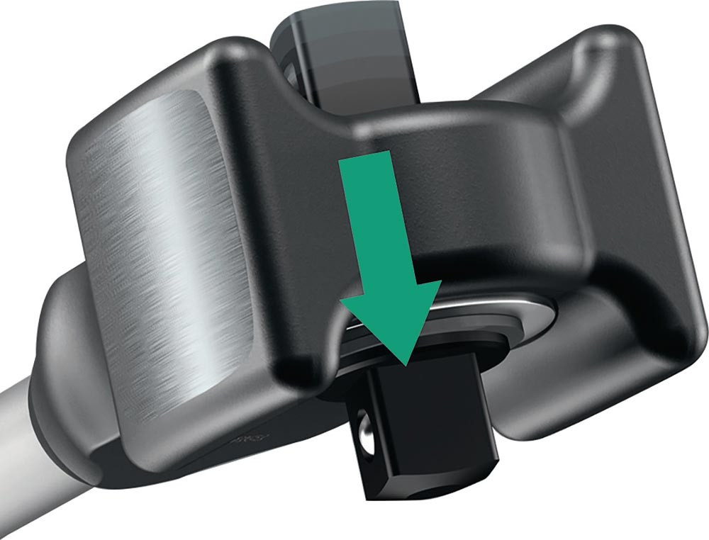 mit Durchsteckvierkant für Rechts- und Linksanzug · mit Kugelarretierung · mindestens bis 600 Nm belastbar · gesenkgeschmiedeter Hammerkopf, formschlüssig verstiftet · Mehrkomponenten Kraftform-Griff · Aufnahme für eine Verlängerung (gehört zum Lieferumfang) bzw. einen Spreizdorn (Spreizdorn = Sonderzubehör – bitte separat bestellen, Art.-Nr. 451438)