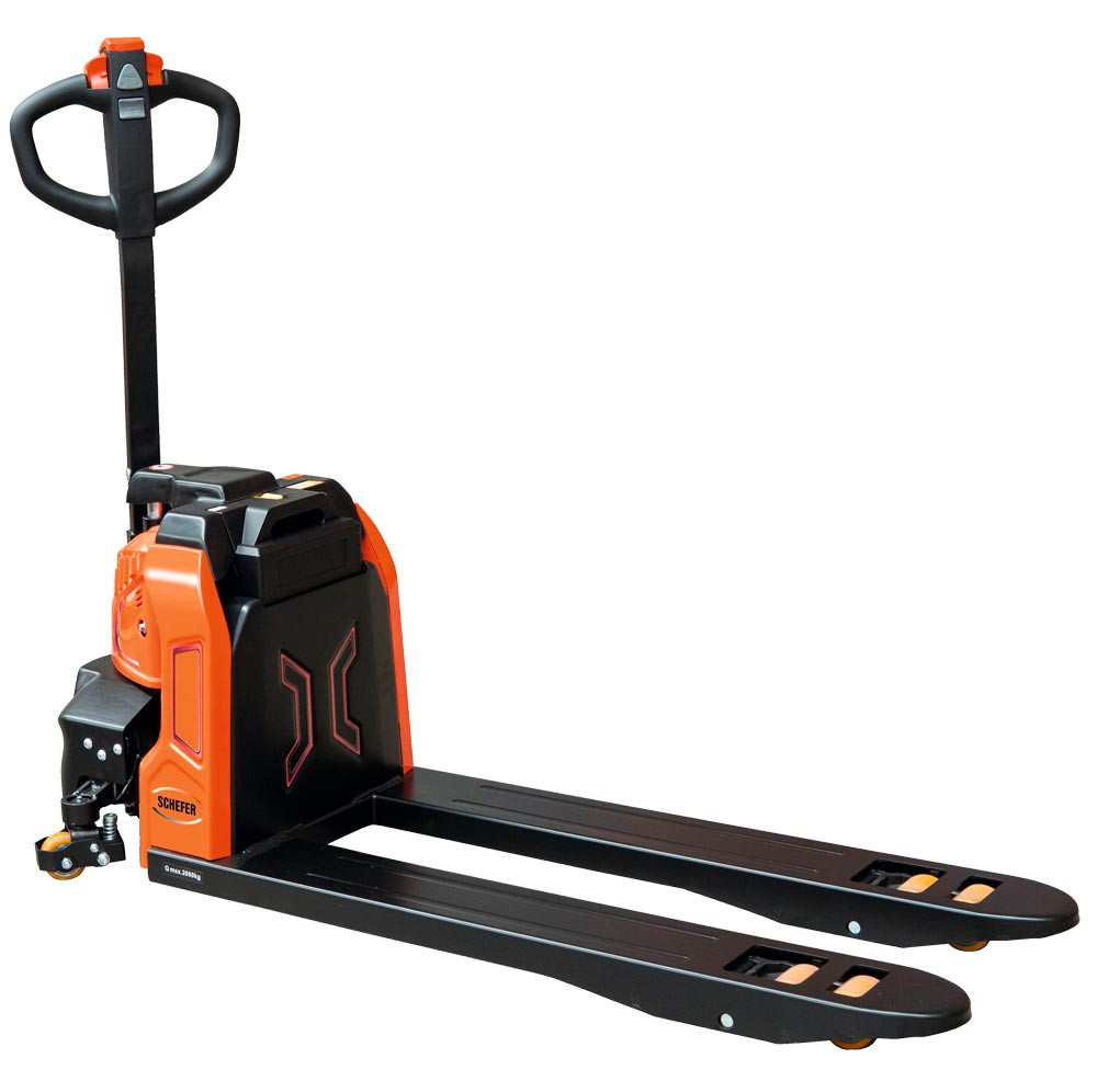 ∙ Elektrisches Heben und Fahren ∙ Leicht zu manövieren durch kleinen Wendekreis ∙ Bürstenloser Antriebsmotor ∙ Elektromagnetbremse serienmäßig ∙ 24 V/30 Ah bei 1500 kg, 48 V/20 Ah bei 2000 kg, Lithium-Ionen-Technik ∙ Inklusive externem Ladegerät mit Ladeanzeige