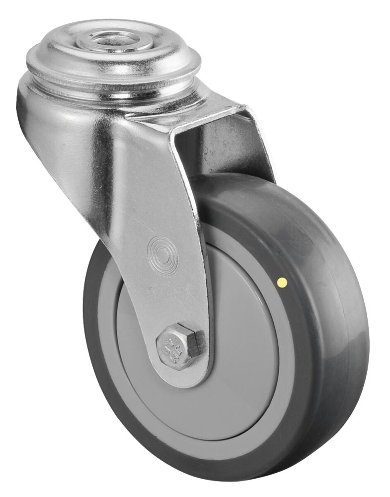 ESD-Apparaterolle, Lenkrolle, Gummi thermoplastisch grau, Durchm. 50 mm, Traglast 50 kg, Kugellager, Rückenloch E6017331