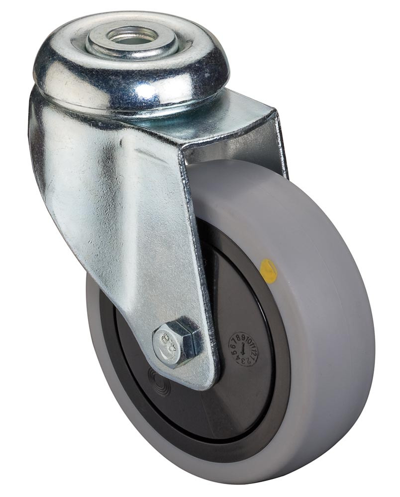 ESD-Apparaterolle, Lenkrolle, Gummi thermoplastisch grau, Durchm. 50 mm, Traglast 50 kg, Kugellager, Rückenloch E6017331