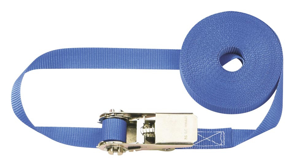 Einteiliger Zurrgurt, 800 daN zul. Zugkraft in der Umreifung, Gurtbreite 25 mm, Länge 6 m, Farbe blau, VE 4 Stück E838051