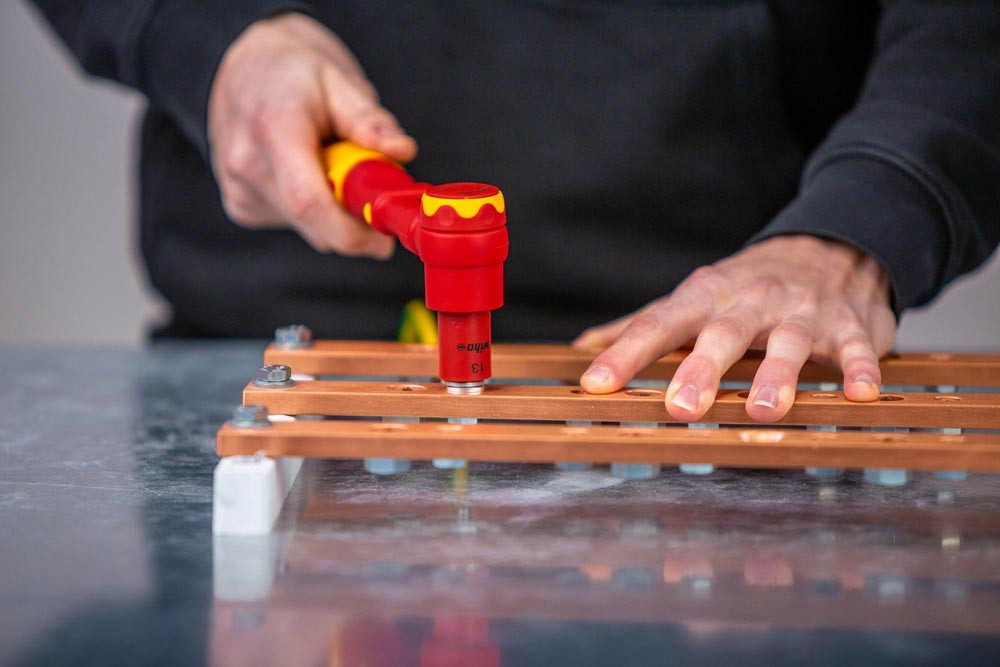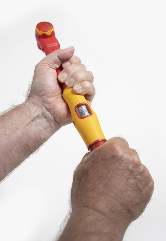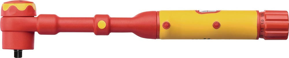 variabel einstellbares Drehmoment · jedes Werkzeug einzeln bei 10.000 V AC getestet und zugelassen für 1.000 V AC · sichere Installation von Klemmen und Muffen, Leiteranschlüssen, Verschrauben von Sammelschienen, für Arbeiten im Bereich von spannungsführenden Teilen bis 1.000 V AC · Genauigkeit : +-4% · 10° Schaltwinkel · Rechts-/ Linkslauf · durch Herausziehen und Drehen des Griffendes kann der benötigte Drehmomentwert von Hand eingestellt werden · die auf den 1/4″ Vierkantantrieb gesteckten Steckschlüssel bieten dank der Kugelsicherung einen sicheren Halt · beim Festziehen knickt die Drehmomentmechanik im Schlüssel bei Erreichen des eingestellten Drehmomentwerts spürbar ab · stückgeprüft gemäß Norm EN/IEC 60900 · nur zu verwenden mit isolierten Wiha Steckschlüsseleinsätzen · inkl. Werksprüfprotokoll