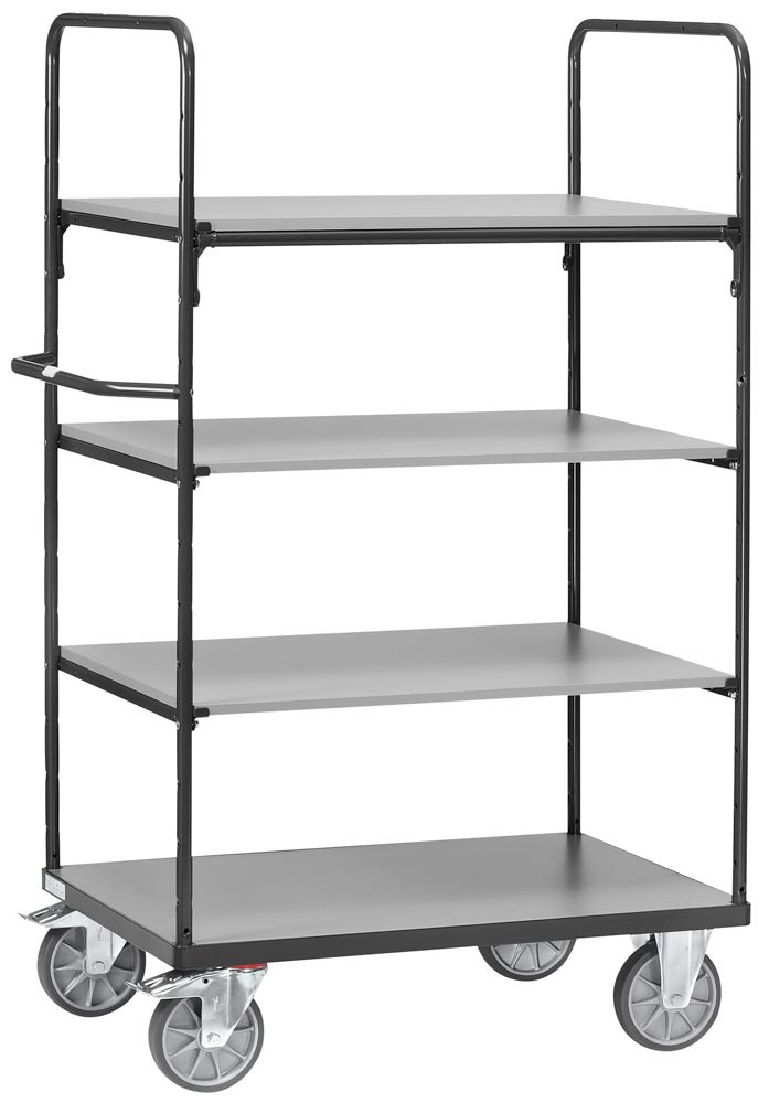Etagenwagen, 2 offene Wände, 4 Ladeflächen LxB 1000x600 mm, Außenmaße 1169x609x1800 mm, Traglast 600 kg, RAL 7016 anthrazit E6041057