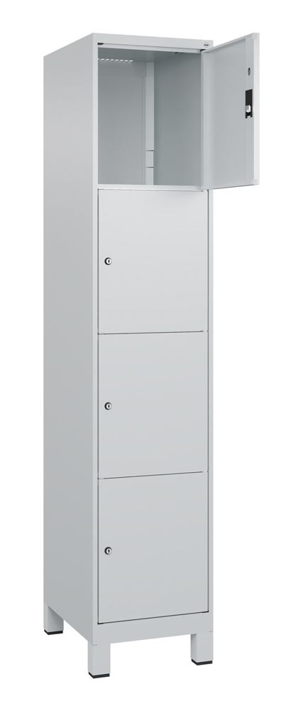 Fächerschrank, BxTxH 400x500x1950 mm, 1x4 Fächer, Abt.B 400 mm, Füße, Schloss, glatte Türen, RAL 7035 E6479290