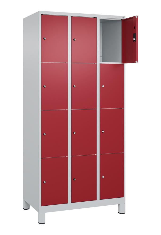 Fächerschrank, BxTxH 900x500x1950 mm, 3x4 Fächer, Abt.B 300 mm, Füße, Schloss, glatte Türen, Farbwahl