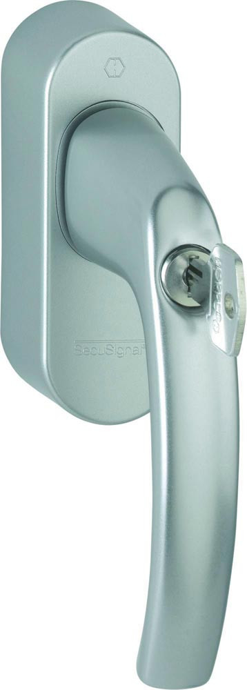 SecuSignal-eFenstergriff Atlanta 0530S/FR-408 100NM Vierkantmaß 7mm Stift 32-42mm vorst. F1 Alu natur abschließbar E6446444
