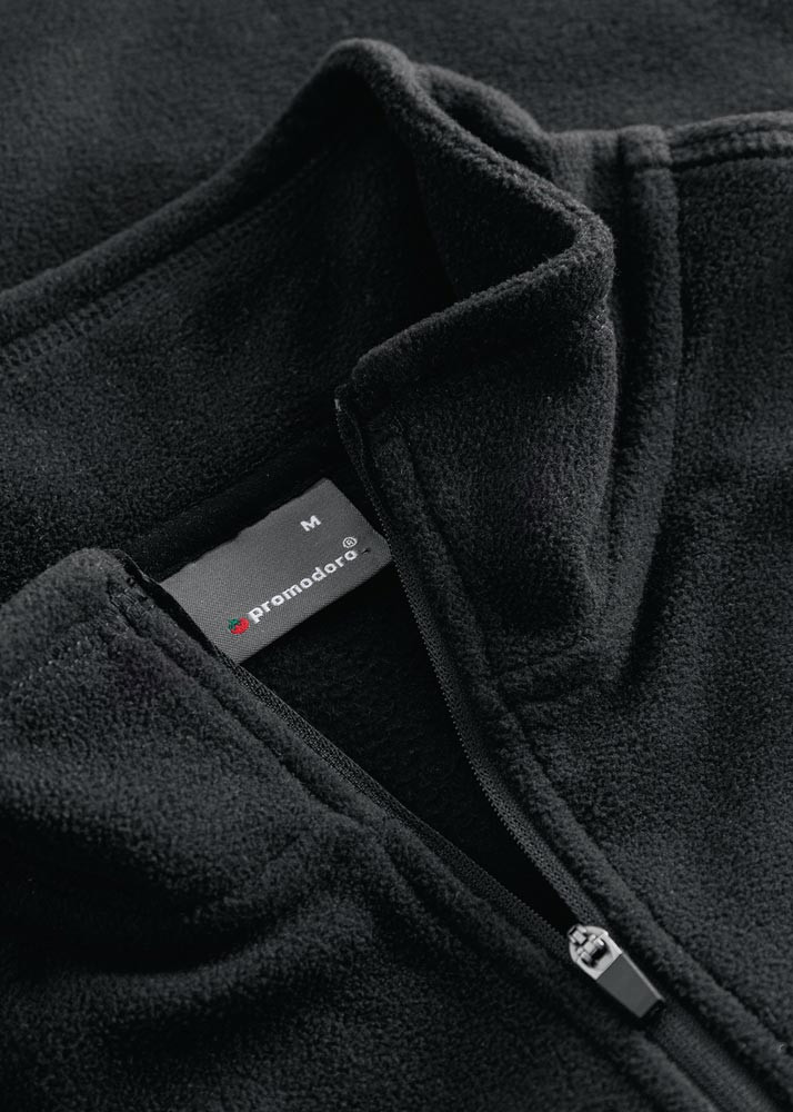 100% recycled Polyester, ca. 250 g/m² · Stehkragen mit Reißverschluss · schmaler elastischer Abschluss an Ärmeln und Saum · versetzte Schulter und Seitennaht · Anti-Pilling-Ausrüstung · recycled aus Plastikflaschen